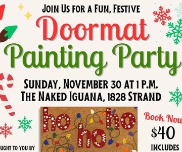 Deck out your doorstep with Christmas cheer! Join us for a fun and festive Doormat Painting Party on Sunday, Nov 30 at 1 p.m. at The Naked Iguana, 1828 Strand in Galveston. It’s $40 and includes all supplies—just bring your ho-ho-holiday spirit! Message @twobrokemoms on Facebook to reserve your spot!