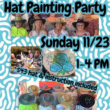 Grab your bestie and get creative at our hat painting party led by local artist, Bonnie Blue. Your entry fee of $43 includes the hat, supplies and instruction, and you’ll wear your masterpiece home. Only 28 spots available. Contact Bonnie at 713-649-6931 to reserve your spot.